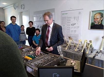Das international agierende Unternehmen ist im Bereich der Hüft- und Knieendoprothetik sowie der Wirbelsäulenchirurgie tätig. Neben dem Einblick in die Medizintechnik durften wir den präventiven Charakter dieses Unternehmens kennenlernen, ja sogar spüren. Die Firma Brehm investiert auf vorbildhafte Weise in die Mitarbeitergesundheit: Ein Kicker-Tisch in der Produktionsfertigung zum „abreagieren“, einen extra Fitnessraum sowie eine überaus wertschätzende Atmosphäre im gesamten Team seinen hier nur beispielhaft genannt. Zunächst stellte sich der Geschäftsführer Herr Oliver Brehm vor und begrüßte uns herzlich mit einigen Zahlen, Daten und Fakten zum Betrieb. Danach führte uns Herr Distler durch die unterschiedlichsten Stationen des Betriebes. Dabei durften wir „Die Präzision in Titan für den Menschen“ live erleben. Die Führung durch den Betreib dauerte ca. 2 Stunden. Danach erhielten wir eine kleine Snackpause mit Getränken, die auch einem ersten fachlichen Austausch diente. Zuletzt zeigte uns Herr Distler noch die unterschiedlichen Modelle von Hüft- und Knieprothesen zum Fühlen und Anfassen im „Operationsraum“ der Firma. Auf diesem Wege möchten wir uns nochmals ganz herzlich für die Betriebsbesichtigung bei der Firma Brehm bedanken. Ein besonderer Dank geht an Herrn Distler, der uns mit seiner begeisternden und lebendigen Art sowie seiner jahrelangen Operationsexpertise einfach „vom Hocker gehauen“ hat.