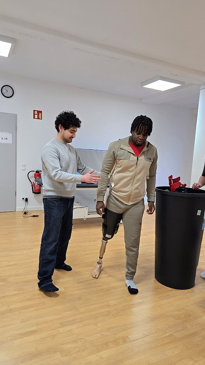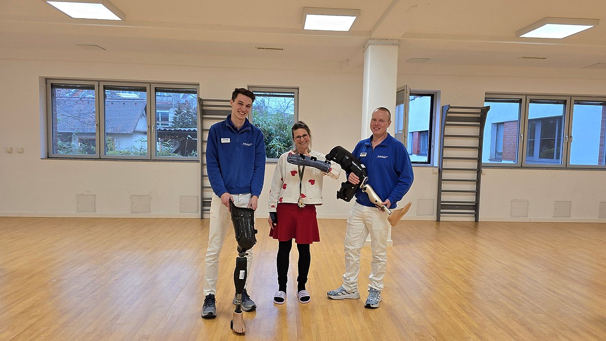 Ein besonderes Highlight der Schulung war die Vorstellung einer speziellen Demonstrationsprothese. Mithilfe dieses Systems konnten die angehenden Physiotherapeutinnen und Physiotherapeuten – obwohl sie selbst keine Amputation hatten – nachempfinden, wie sich das Gehen mit einer Beinprothese anfühlt. Diese Selbsterfahrung ermöglichte einen Perspektivwechsel und förderte ein tieferes Verständnis für die Herausforderungen, denen amputierte Patientinnen und Patienten im Alltag begegnen.
