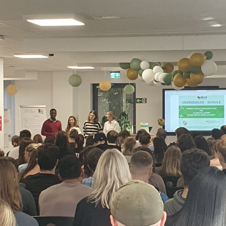 Am Dienstag, den 30. September 2025, nahmen die Schülerinnen und Schüler des Staatlichen Beruflichen Schulzentrums für Gesundheitsberufe gemeinsam mit zwei Grenzenlos-Aktiven (Studierende aus Afrika) des World University Service (WUS) an zwei Lehrkooperationen zum Thema Nachhaltigkeit teil. Zudem wurde an diesem Tag das BSZG Erlangen von der WUS als „Grenzenlos-Schule“ zertifiziert.